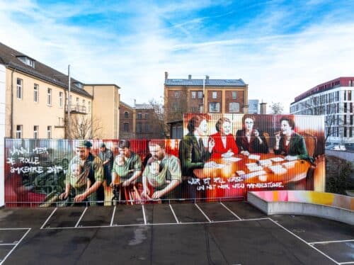 Dieses Kunstwerk ist für uns mehr als eine Fassadengestaltung. Es ist ein Statement. Für einen Standort, dessen industrielle Geschichte bis heute nachwirkt. Für Menschen, deren Leistung oft unsichtbar blieb. Und für die Frage, was passieren würde, wenn sich Perspektiven wirklich ändern dürften. Dieses Mural verschönert nicht nur eine Fassade, es öffnet einen Resonanzraum, lädt zum Hinsehen ein und zum Weiterdenken. Kunst darf irritieren. Sie darf provozieren. Und manchmal ist genau das der Anfang eines Gesprächs, das längst überfällig ist.